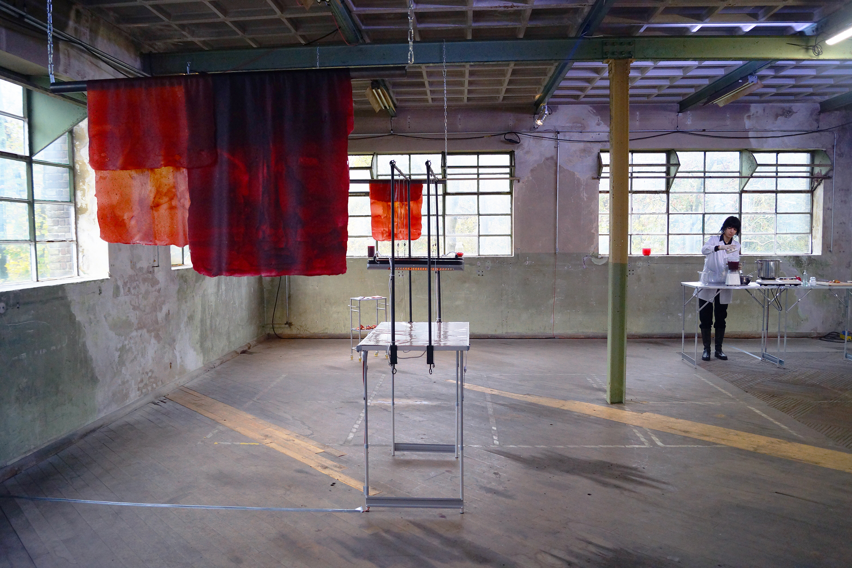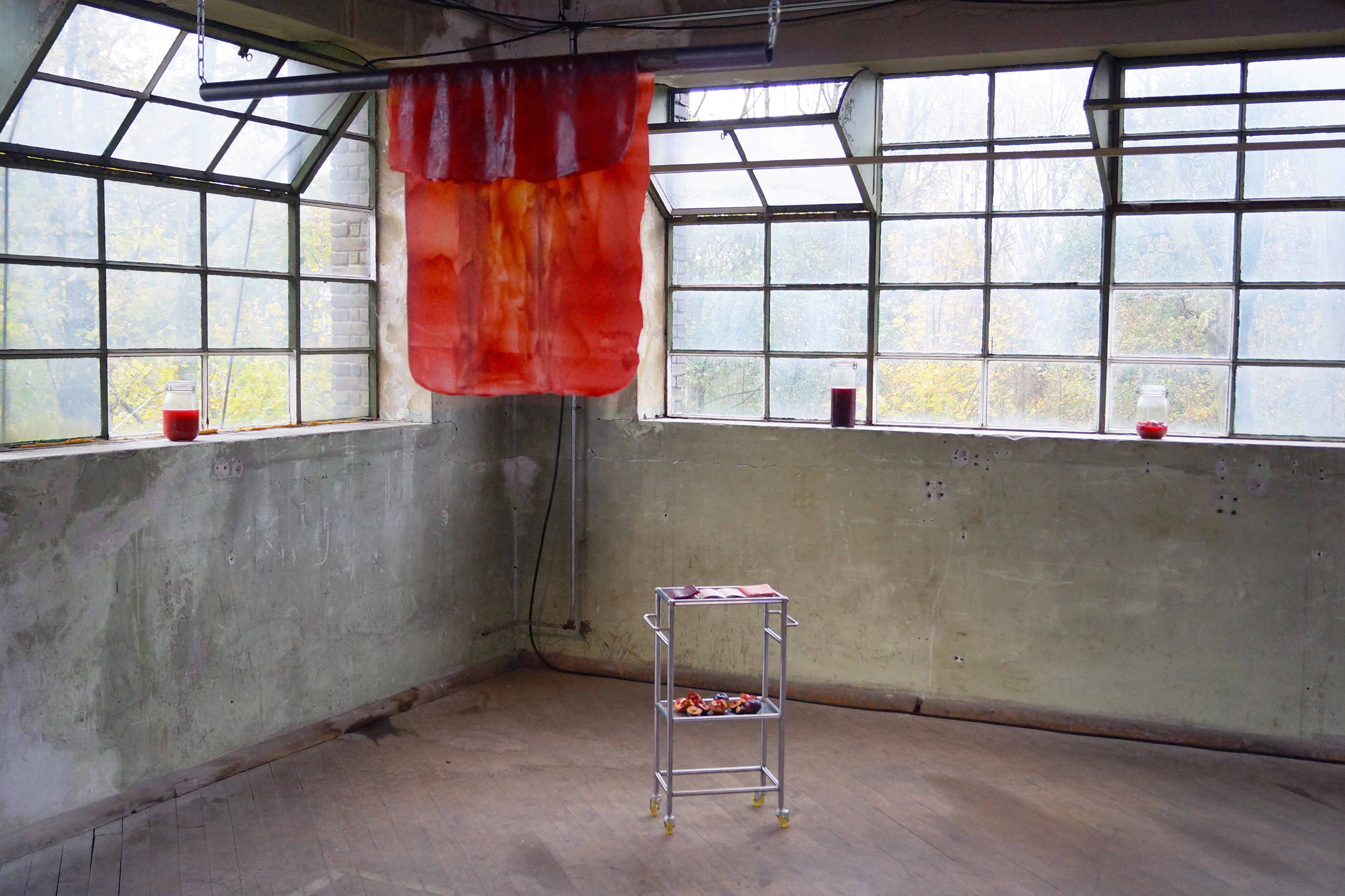 fruit leather, plexiglass, concrete.